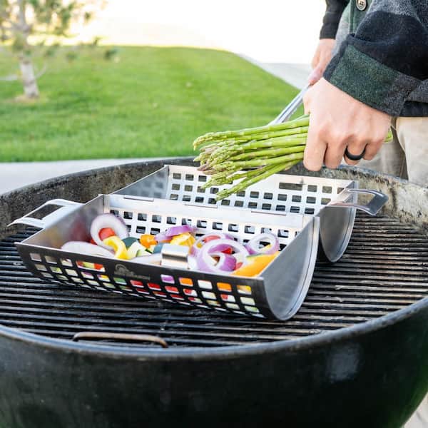 Stainless Steel Rolling Grill Basket and Veggie Basket