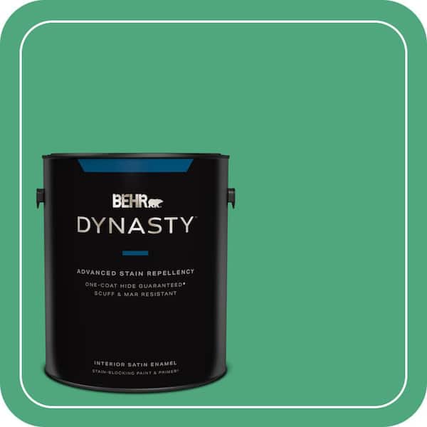 1 gal. #P420-5 Shamrock Green Satin Enamel Interior Stain-Blocking Paint and Primer