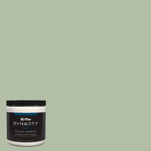 8 oz. #S390-3 Creamy Spinach One-Coat Hide Satin Enamel Stain-Blocking Interior/Exterior Paint and Primer