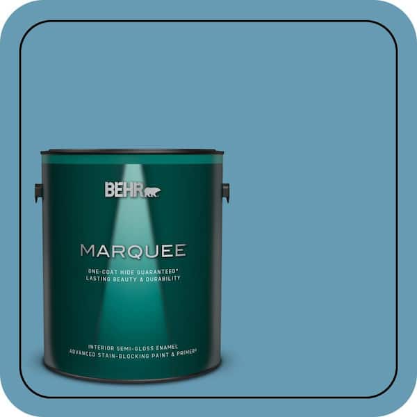 1 gal. #S490-4 Yacht Blue One-Coat Hide Semi-Gloss Enamel Interior Paint & Primer