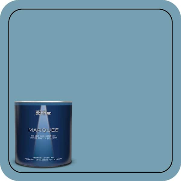 1 qt. #S480-4 Saga Blue One-Coat Hide Satin Enamel Interior Paint & Primer
