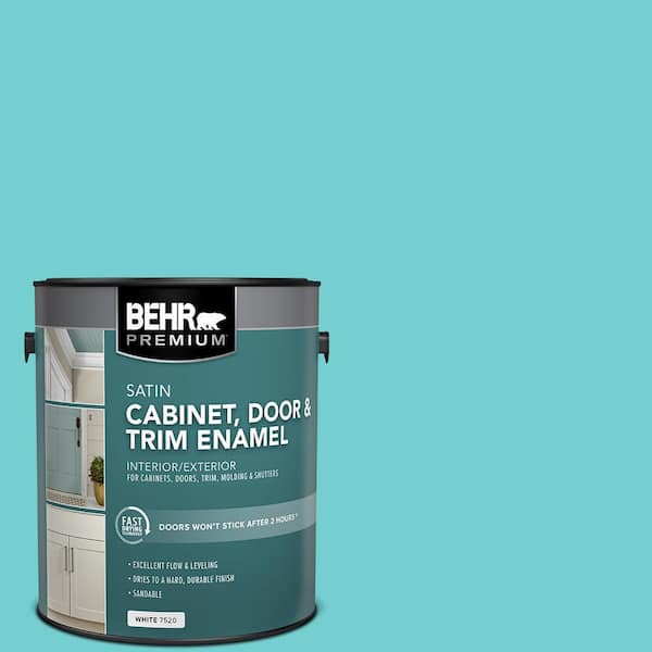 1 gal. #P460-3 Soft Turquoise Satin Enamel Interior/Exterior Cabinet, Door & Trim Paint