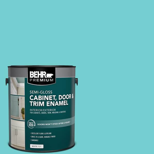 1 gal. #P460-3 Soft Turquoise Semi-Gloss Enamel Interior/Exterior Cabinet, Door & Trim Paint