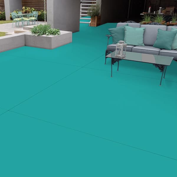 5 gal. #MQ4-21 Caicos Turquoise Self-Priming 1-Part Epoxy Satin Interior/Exterior Concrete and Garage Floor Paint
