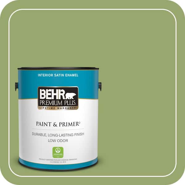 1 gal. #MQ4-43 Green Plaza Satin Enamel Low Odor Interior Paint & Primer