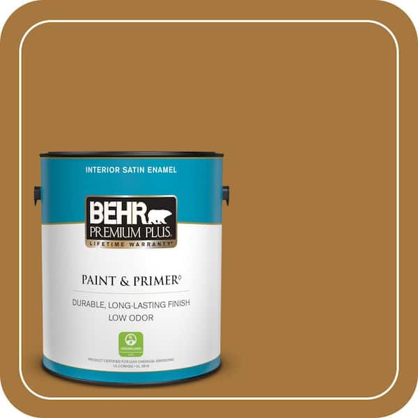 1 gal. #MQ4-6 Invitation Gold Satin Enamel Low Odor Interior Paint & Primer