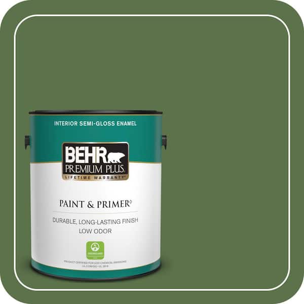1 gal. #MQ6-48 Hummingbird Green Semi-Gloss Enamel Low Odor Interior Paint & Primer