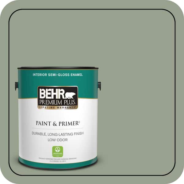 1 gal. #N390-4 Bitter Sage Semi-Gloss Enamel Low Odor Interior Paint & Primer