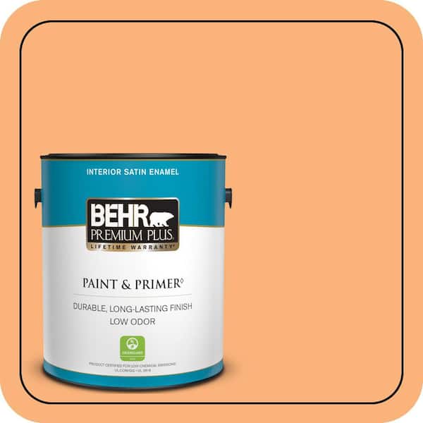 1 gal. #P220-5 Fuzzy Peach Satin Enamel Low Odor Interior Paint & Primer