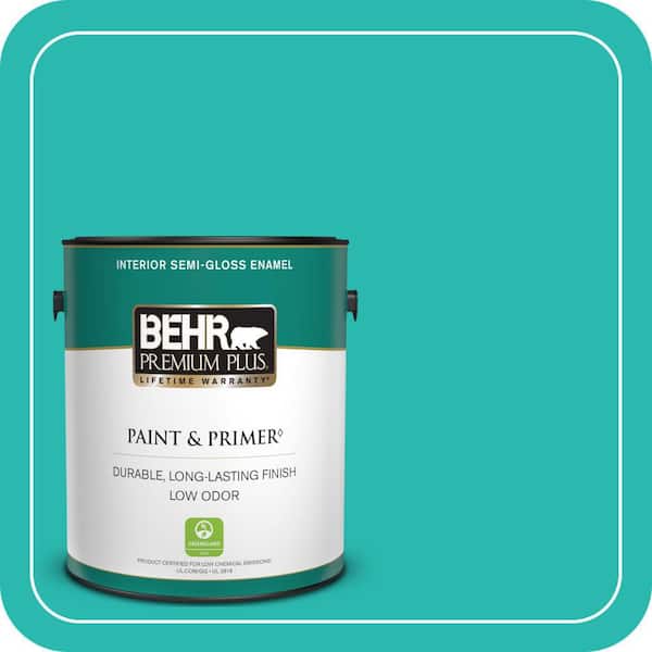 1 gal. #P450-5 Island Aqua Semi-Gloss Enamel Low Odor Interior Paint & Primer