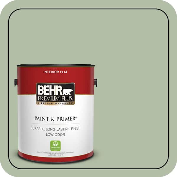 1 gal. #S390-3 Creamy Spinach Flat Low Odor Interior Paint & Primer