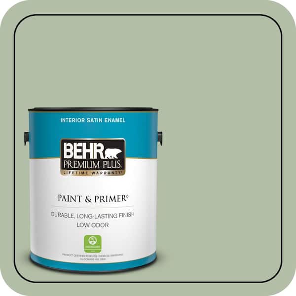 1 gal. #S390-3 Creamy Spinach Satin Enamel Low Odor Interior Paint & Primer
