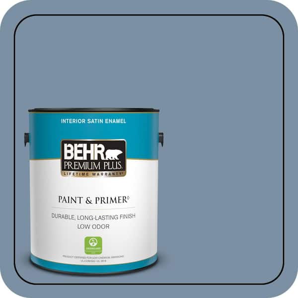 1 gal. #S510-4 Jean Jacket Blue Satin Enamel Low Odor Interior Paint & Primer