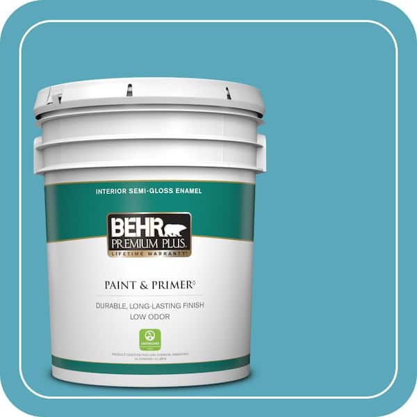 5 Gal. #T15-11 Sonic Blue Semi-Gloss Enamel Low Odor Interior Paint & Primer