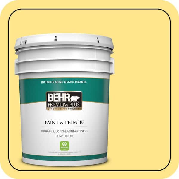 5 gal. #370A-3 Bicycle Yellow Semi-Gloss Enamel Low Odor Interior Paint & Primer