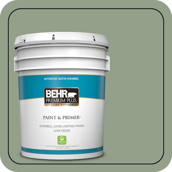 5 gal. #440F-4 Athenian Green Satin Enamel Low Odor Interior Paint & Primer