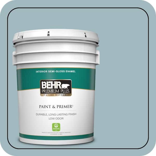 5 gal. #BIC-23 Hopeful Blue Semi-Gloss Enamel Low Odor Interior Paint & Primer