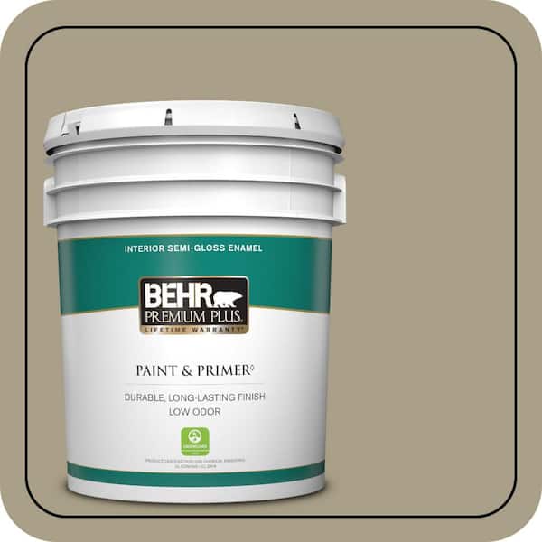 5 gal. #N340-4 Tent Green Semi-Gloss Enamel Low Odor Interior Paint & Primer