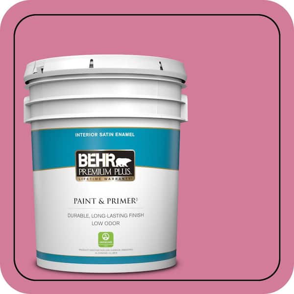 5 gal. #P130-5 Little Bow Pink Satin Enamel Low Odor Interior Paint & Primer