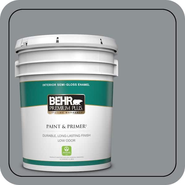 5 gal. #PPU26-05 Flint Gray Semi-Gloss Enamel Low Odor Interior Paint & Primer