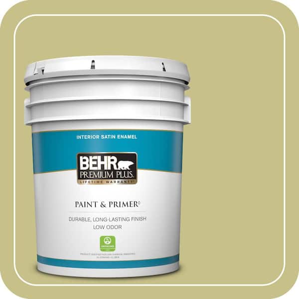 5 gal. #PPU9-11 Wheat Grass Satin Enamel Low Odor Interior Paint & Primer