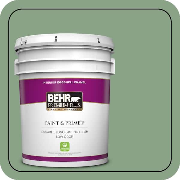 5 gal. #S400-5 Gallery Green Eggshell Enamel Low Odor Interior Paint & Primer
