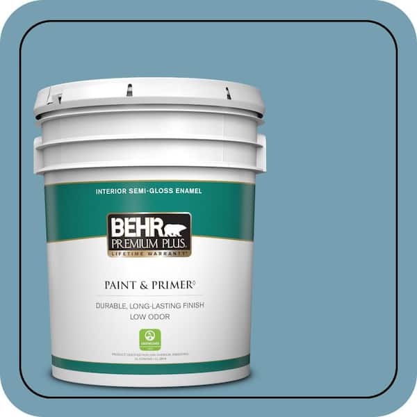 5 gal. #S480-4 Saga Blue Semi-Gloss Enamel Low Odor Interior Paint & Primer