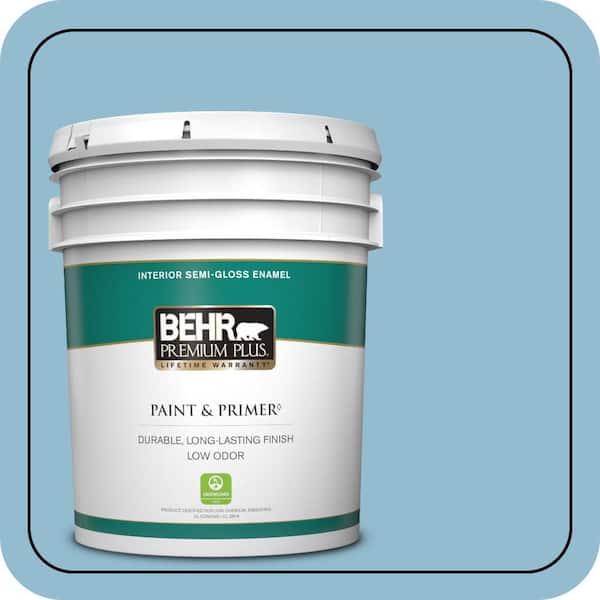 5 gal. #S490-3 Reef Blue Semi-Gloss Enamel Low Odor Interior Paint & Primer
