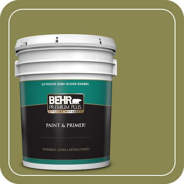5 gal. #T15-18 Snap Pea Green Semi-Gloss Enamel Exterior Paint & Primer