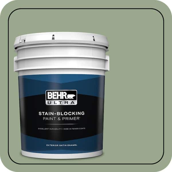 5 gal. #PPU11-05 Pesto Green Satin Enamel Exterior Paint & Primer