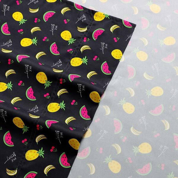 Betsey Fruits Toss 4-Piece Black/Yellow/Pink Microfiber Full Sheet Set
