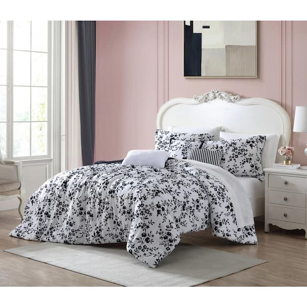 Pretty Floral 3-Piece Black Microfiber King Bonus Comforter Set