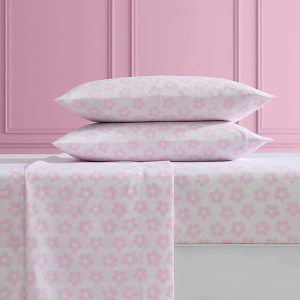 Retro Daisy 4-Piece Pink Microfiber Queen Sheet Set
