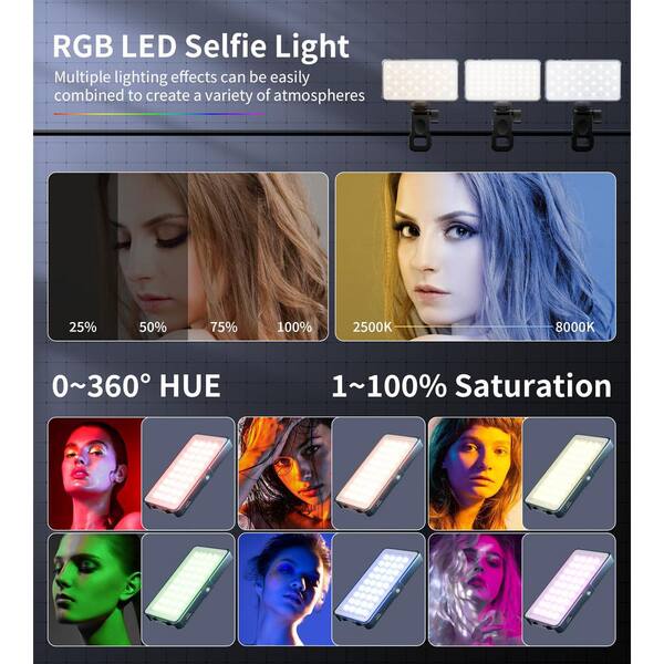 1-Piece 96 LED Phone Light w/ Metal Hotshoe and Clip,Selfie Light 1500mAh Rechargeable 360° Full Color for iPhone TikTok