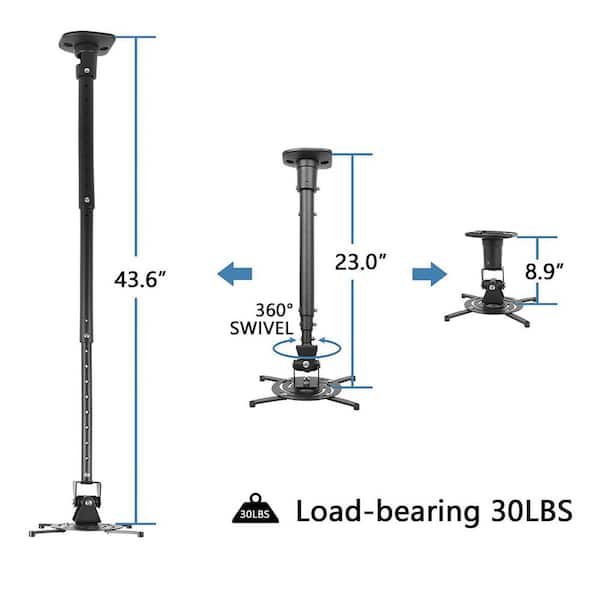 Black Full Motion Universal Ceiling Projector Mount Bracket, Extendable Arms Rotating Swivel Mount for Projector