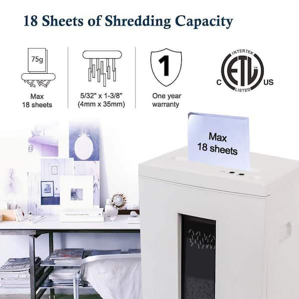 White 13.4 in. x 10.4 in. x 22 in. 18-Sheet Shredders, P-4 Security Level Crosscut Paper Shredder with Waste Bin