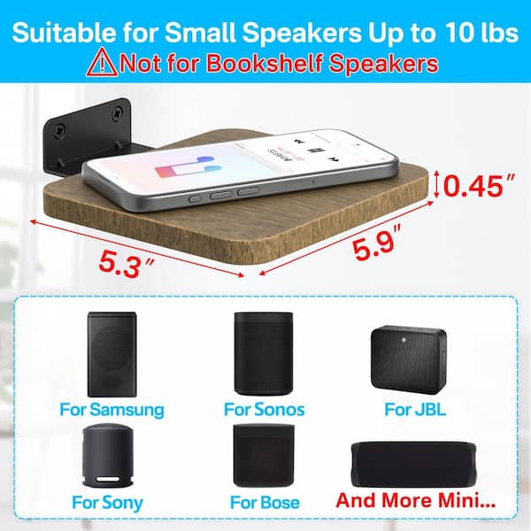Wooden Universal Speaker Shelves, Adjustable Speaker Wall Mounts for Most of Satellite Speakers Floating Wall Shelf