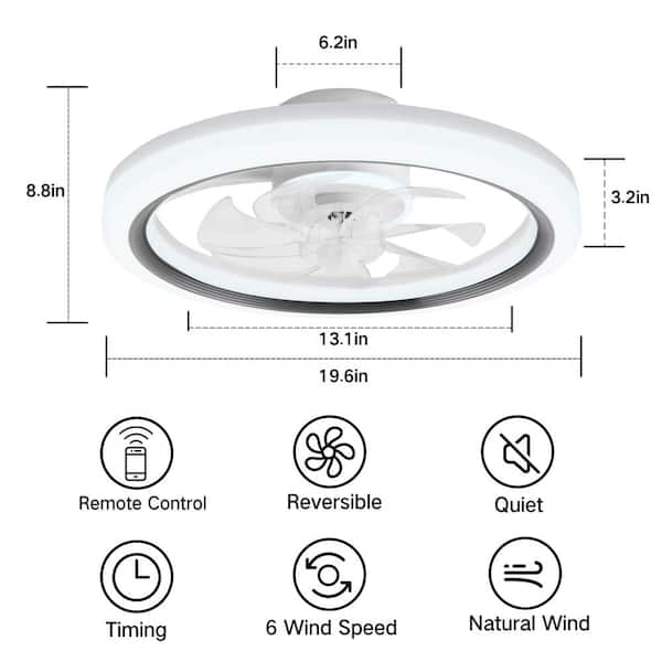 20 in. Dimmable LED Indoor White Low Profile Flush Mount Ceiling Fan with Remote Control