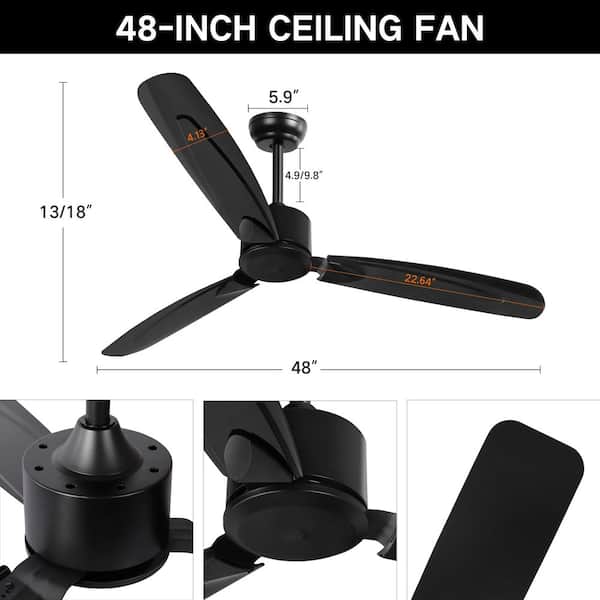 48 in. Indoor/Covered Outdoor Black Ceiling Fan with Remote Control