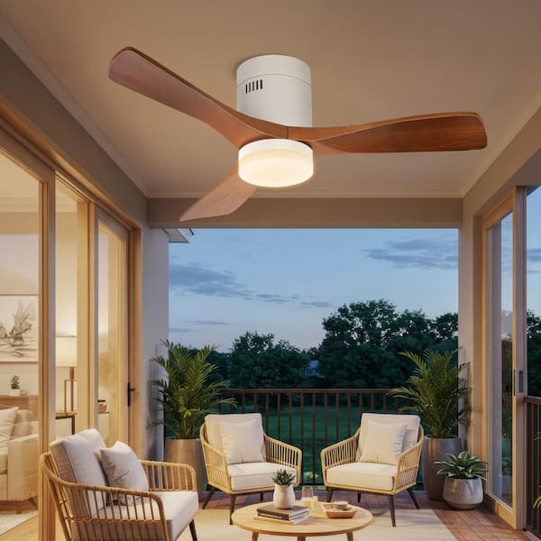 48 in. Integrated LED Indoor/Covered Outdoor White Flush Mount Ceiling Fan with Remote