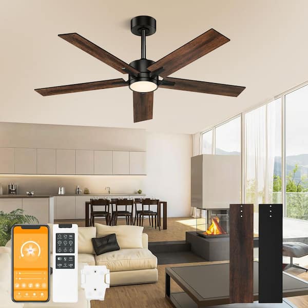 52 in. Indoor/Covered Outdoor Black Modern Ceiling Fan with Adjustable Color Temperature Light and Remote