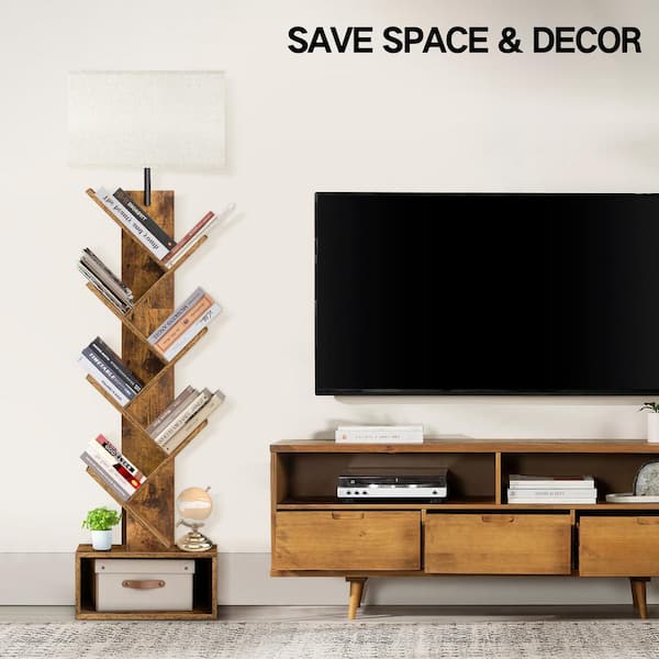 56.7 in. Dark Wood Rustic 1-Light Dimmable Standard Floor Lamp with Fabric Rectangular Shade for Living Room