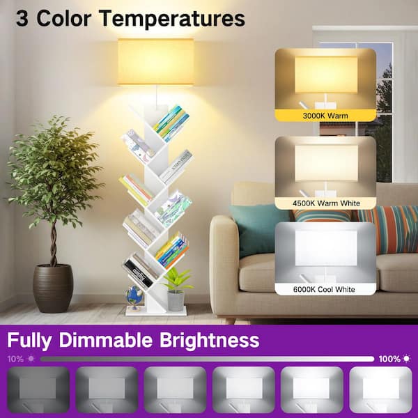 60 in. White Standard 1-Light Dimmable Tree Shape Bookshelf Floor Lamp with Color Temperature and Linen Shade