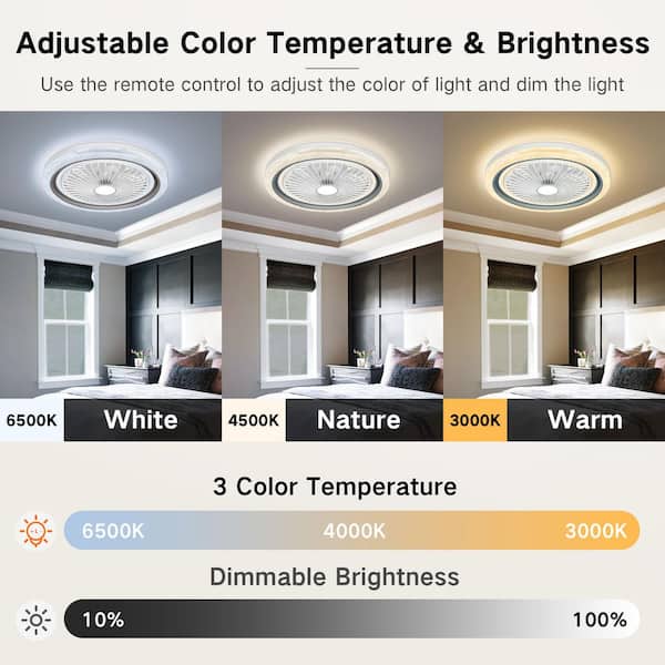 Modern 19 in. Smart Indoor White Dimmable Low Profile Flush Mount Ceiling Fan with Integrated LED and Remote Included