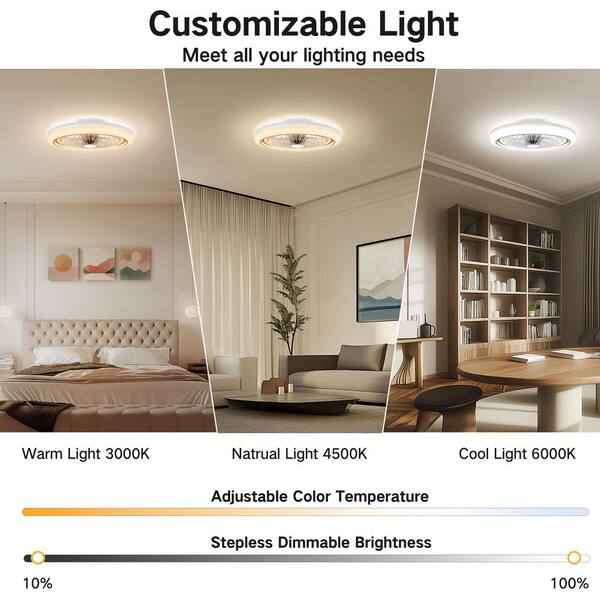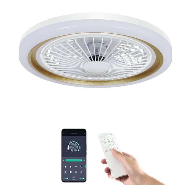 Modern Flush Mount Dimmable 19 in. Smart Indoor White and Gold Ceiling Fan with Color Changing Integrated LED and Remote