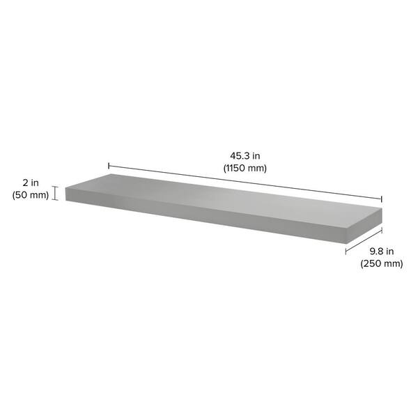 BIG BOY 45.3 in. x 9.8 in. x 2 in. Silver MDF Floating Decorative Wall Shelf with Brackets