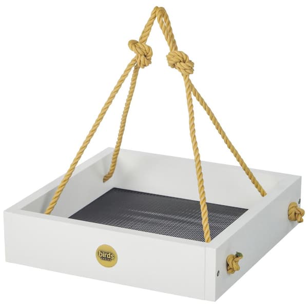 Modern Farmhouse Small Hanging Platform Bird Feeder in White