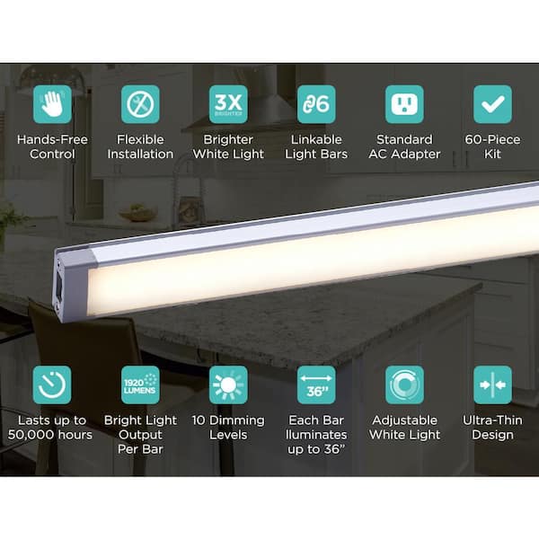 9 in. Plug-In Kit Adjustable Silver Integrated LED Linkable 6-Bar Tool-Free Under Cabinet Light