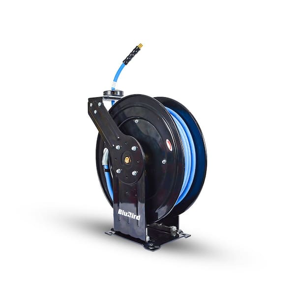 3/8 in. x 75 ft. Heavy Duty Rubber Air Hose and Dual Arm Powder-Coated Steel Hose Reel