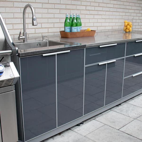 Aluminum 60 in. W x 37.25 in. H x 25.25 in. D Outdoor Kitchen Cabinet Set Slate Gray with 1-Drawer/2Door Cabinet 2-Piece